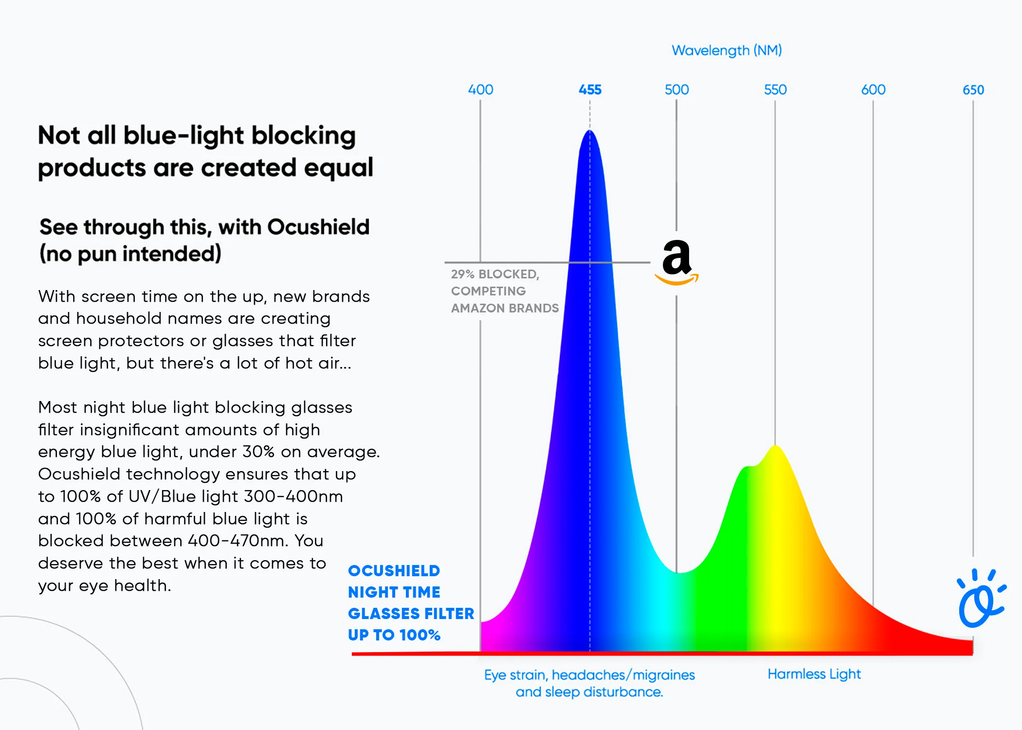 - Up to 100% blue light filtered - ideal for optimising sleep